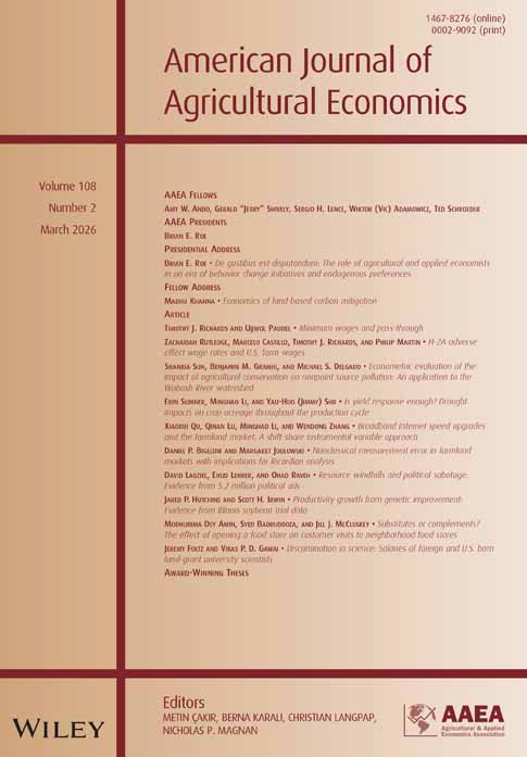 作者:Baojie Ma, Yuqing Zheng, Shaosheng Jin*, Bin Lyu期刊:《American Journal of Agricultural Econo...