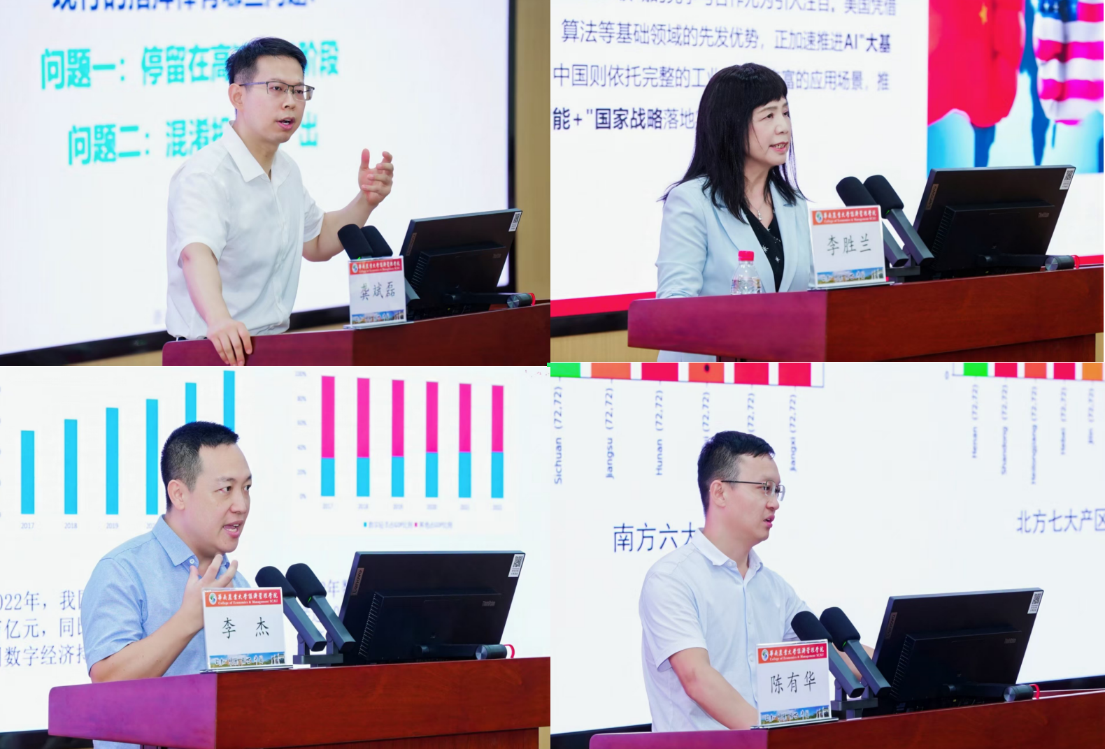大会报告环节由华南农业大学经济管理学院副院长黄松教授主持。浙江大学求是特聘教授、教育部长江学者特聘教授龚斌磊教授以《新质生产力的催生因素与核心标志》为题作首场报告,深入剖析新质生产力的理论内涵与发展路径。中山大学岭南学院李胜兰教授以《中美两国数字经济发展路径、挑战和未来发展趋势》为题,探讨了中美两国在数字经济发展领域的大国博弈问题。随后,暨南大学产业经济研究院副院长李杰教授围绕《数字行业人才引进与培养方式创新》展开报告,华南农业大学经济管理学院陈有华教授则以《基于反饥饿的农业发展韧性评估》为题,从韧性视角提出保障粮食安全的新思路。大会报告内容前沿、讨论热烈,为与会者提供了丰富的学术启迪。