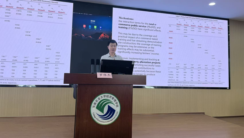 2025年11月14日上午,紫荆学术论坛274期在华南农业大学经济管理学院601报告厅举行,北京第二外国语学院数字经济研究中心主任罗伟杰副教授,以“E-Commerce and Rural Revitalization in China”为主题为我院师生们呈现了一场丰富精彩的学术讲座。会议由金融系主任董莹副教授主持,吸引了众多研究生的积极参与。