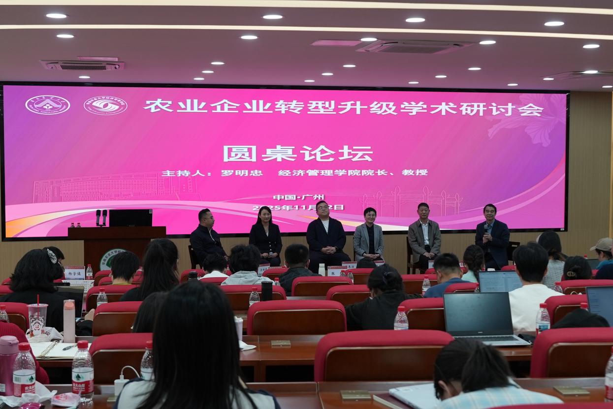 为响应党的二十届四中全会关于加快农业农村现代化、扎实推进乡村全面振兴的战略部署,搭建企校深度合作平台。2025年11月22日,华南农业大学经济管理学院主办“企业家面对面:农业企业转型升级学术研讨会”在我院601报告厅隆重举行。本次活动作为“企业家进校园”系列活动的开篇之作,汇聚了农业产业一线企业家、高校学者及学生代表,以主题演讲、圆桌对话、互动交流等形式,共探农业企业高质量发展新路径。