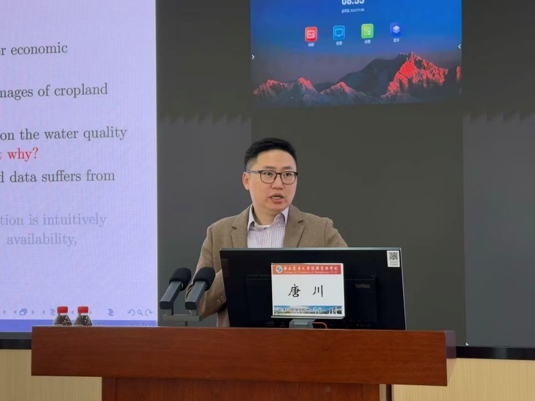 11月28日,华中农业大学经济管理学院副教授唐川,在经济管理学院601报告厅分别围绕《基于卫星数据测度农业面源水污染》与《经济学英文期刊发表经验分享》两个主题作学术报告,讲座由张露教授主持。