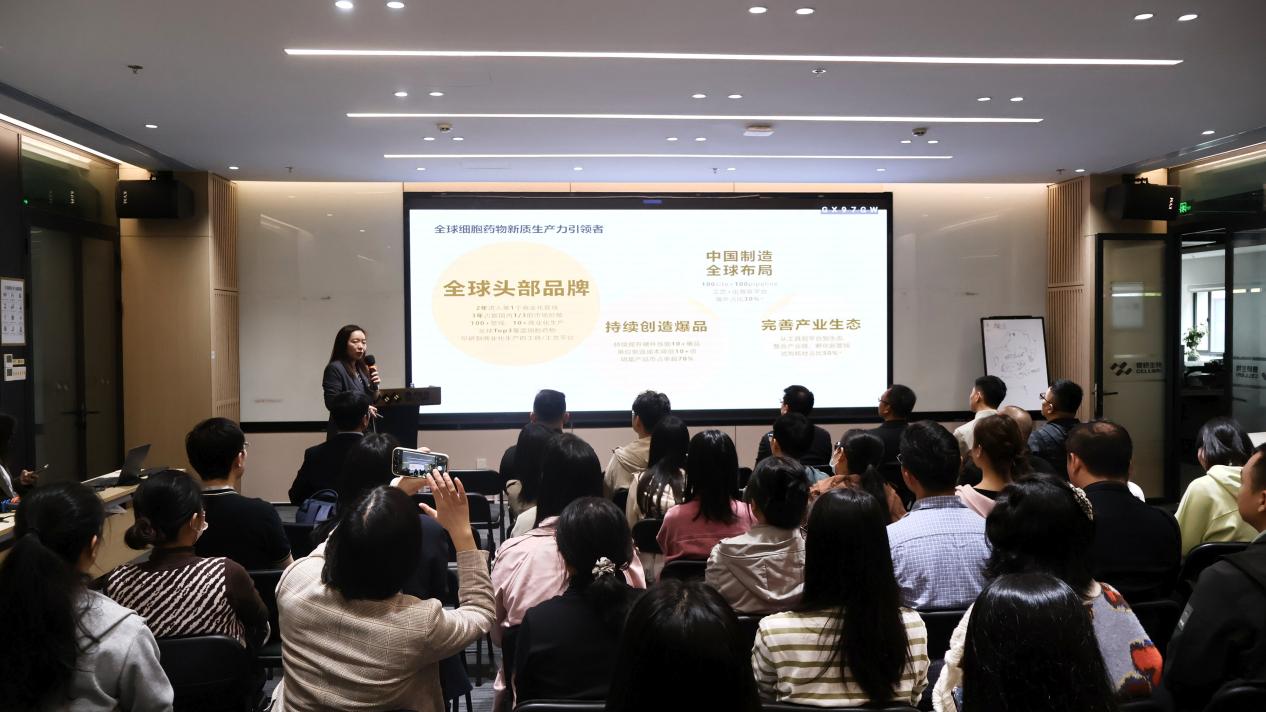 参访中,销售总监刘伟详细介绍了企业的核心竞争优势与业务布局。她强调,赛桥生物始终以“提升全球细胞药物新质生产力”为使命,秉持“让天下没有治不起的病”的企业愿景,通过工艺与工具一体化创新,着力解决细胞治疗领域“交不出、用不起”的行业痛点。目前,公司业务已覆盖全球超过100个管线,为多款上市药物的研发及变更提供支持,是全球前三的全阶段自主工具平台提供商。