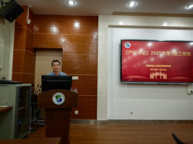 2025年11月30日,由华南农业大学经济管理学院承办的“《产经评论》2025年第3期论文工作坊”成功举办。本次论文工作坊主题为“农业产业高质量发展”,共报告论文10篇。