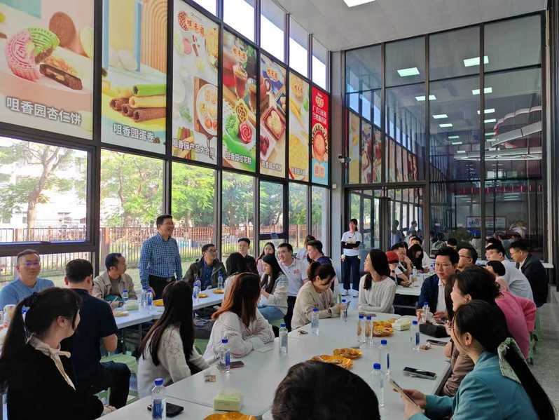 为加强产学研深度融合,促进MBA教育与企业实践精准对接,探访工业旅游的创新模式和汲取企业转型发展经验,以看、品、学三维一体提升MBA理论与实践相结合能力,12月21日,经管学院2024级MBA学生赴中山市咀香园食品有限公司开展参访交流活动。本次活动由华南农业大学经济管理学院院长助理、MBA中心主任杨学儒教授和工商管理本科专业副主任冯江洪副教授带队,近50名MBA学生参与,中山市咀香园食品有限公司行政总监吴柏良先生和咀香园文化馆李国宾先生全程接待讲解。