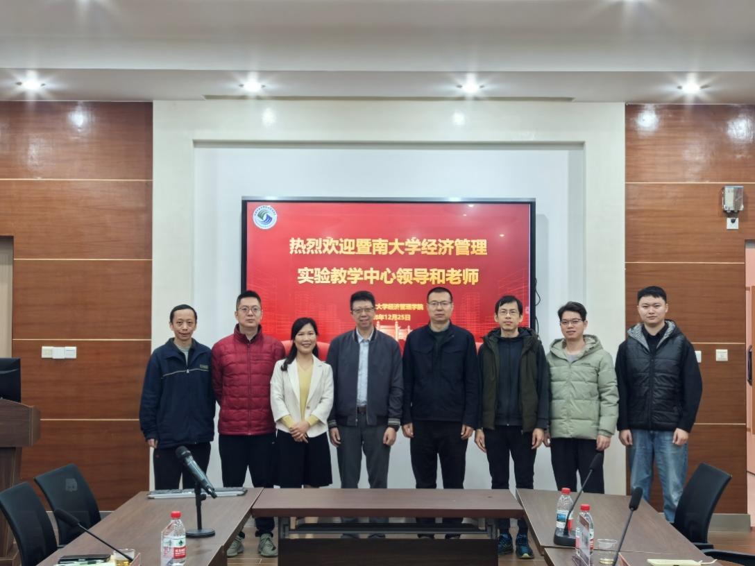 12月25日上午,暨南大学管理学院实验教学中心何毅舟主任一行莅临我院实验中心开展调研交流活动。双方围绕经管实验室信息化建设与管理模式创新、实验课程与实验项目建设等关键议题,结合新文科建设背景下经管实验教学的前沿动向,进行了深度研讨与经验交流。我院教学副院长蔡键、实验中心副主任李巧璇及核心骨干教师参加座谈。