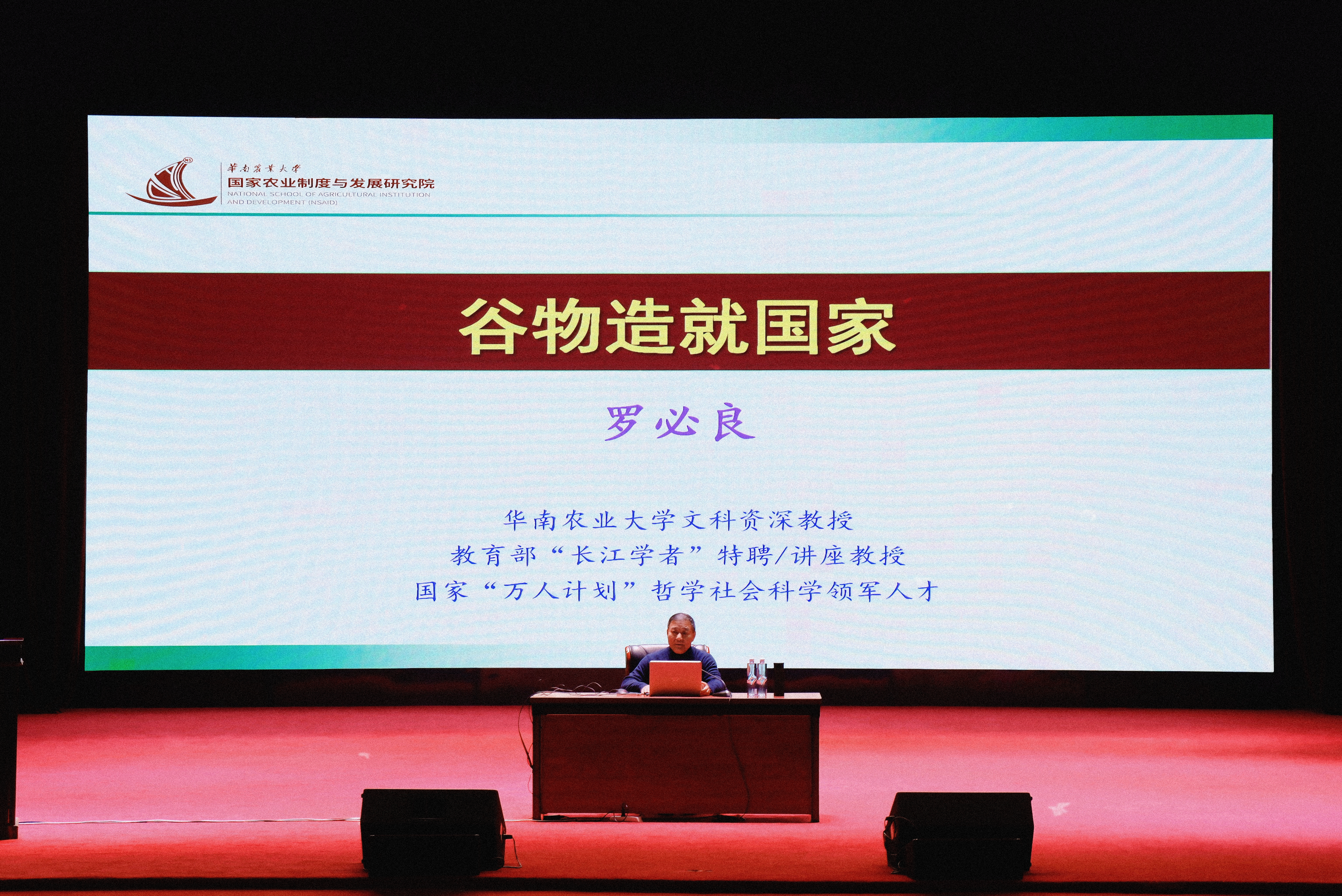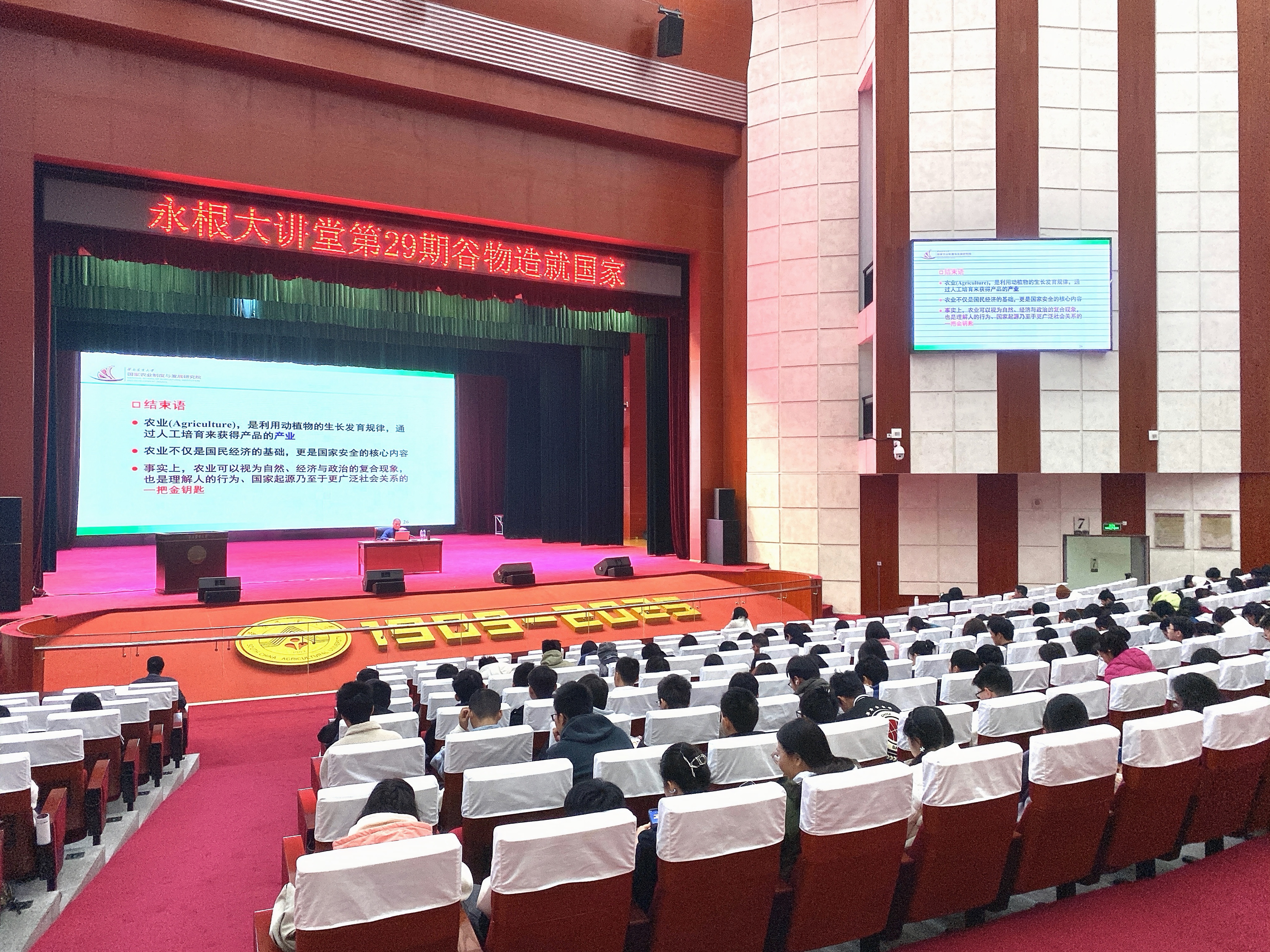 12月26日,第29期的永根大讲堂在丁颖礼堂开办。本次讲堂由经济管理学院承办,邀请了华南农业大学文科资深教授罗必良老师为卢永根书院和经济管理学院2025级学生代表开讲“谷物造就国家”的主题讲座。