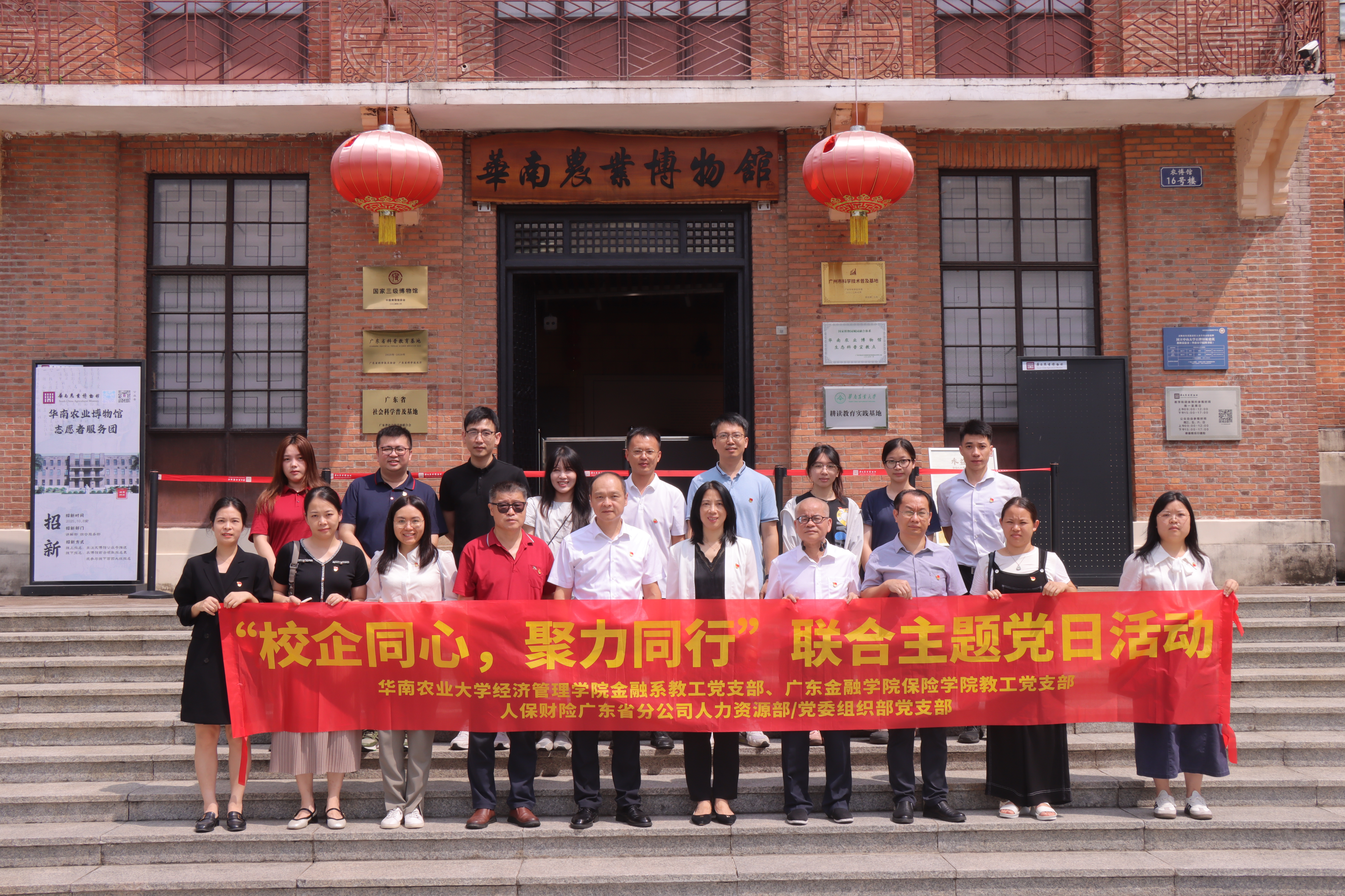 开班仪式后,我院金融系教工党支部联合广东金融学院保险学院教工党支部和人保财险广东省分公司人力资源部党支部开展“校企同心,聚力同行”主题党日活动。三方围绕支部联建、学生企业参访、科研合作深化、实习机制优化、教师带岗实训等议题深入交流,明确了金融知识指导、资源对接、职场培训、联合反诈宣传等合作重点,着力构建 “党建引领、优势互补、资源共享、协同发展” 的良好格局。随后,三方人员共同参观华南农业博物馆,深入了解中国与世界农业资源起源,感受广东农业文明发展脉络。