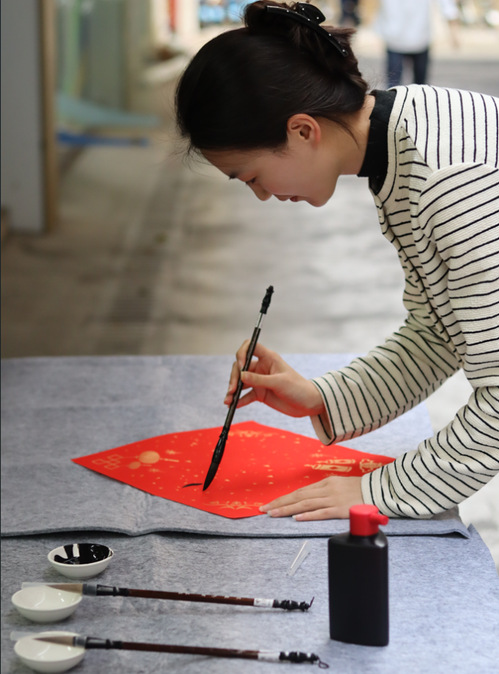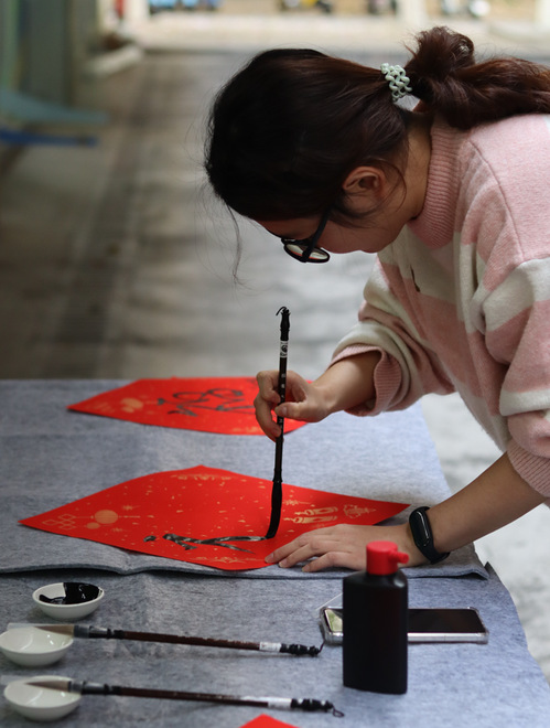 活动最后,师生一同铺纸研墨,书写“福”字。一横一竖,承载传统韵味;一笔一画,寄托真挚祝愿。