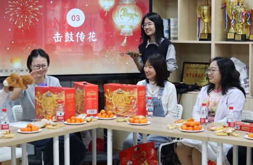 随后进行的游戏环节氛围热烈、笑声不断。“击鼓传花”游戏中,可爱的马年公仔随音乐传递,承载着对新年的美好祈愿;“成语猜谜”巧妙结合传统文化,展现出同学们的机智与才思。现场欢呼声不断,洋溢着节日的欢愉。