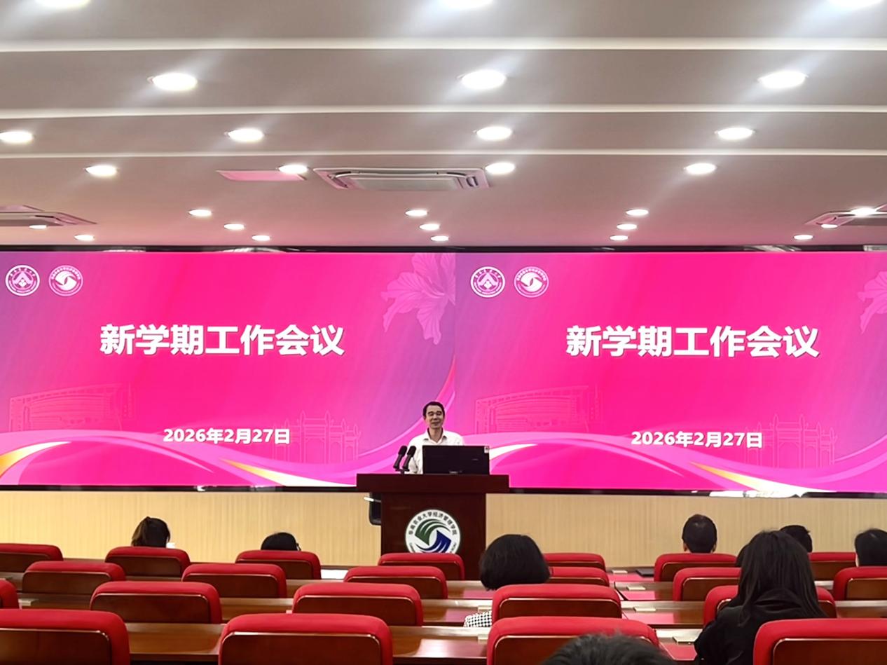 2月27日,经济管理学院新学期工作会议在院楼601报告厅召开。会议立足2026年学院发展关键节点,系统谋划全年重点工作。院长罗明忠主持会议,党委书记张晖讲话,全体教职工参加会议。