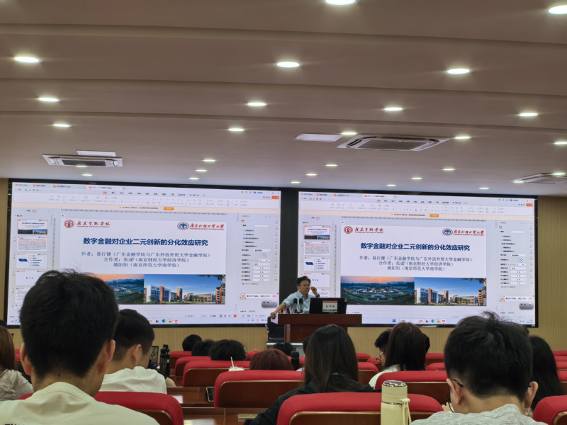 讲座伊始,易教授结合当前产业结构转型与科技竞争加剧的宏观背景,指出在加快实现高水平科技自立自强的战略要求下,金融发展对助力技术突破具有重要意义。然而,现有研究对金融发展与企业创新的关系结论不一。为此,易教授团队独辟蹊径,将技术创新精细划分为“突破式创新”与“渐进式创新”,实证揭示了一个引人深思的核心结论:数字金融的发展对二元创新产生了显著的分化效应——在促进渐进式创新的同时,抑制了突破式创新。