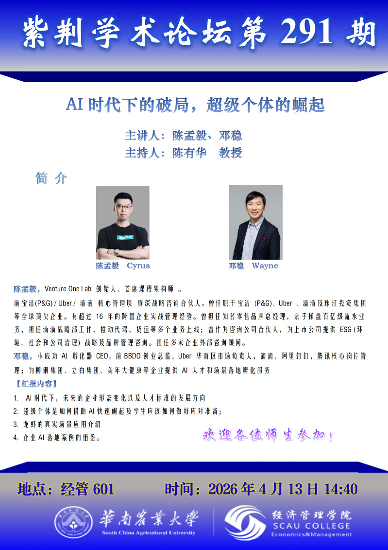 紫荆学术论坛第291期